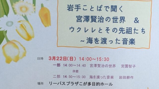 コンサート告知 3月22日 宮沢賢治の世界&ウクレレとその先祖たち