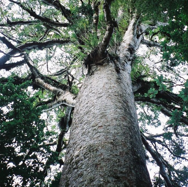 「新桂」や「南洋桂」や「南洋桧」などと、でたらめな名を付けられたアガチスも同じです。アガチスは、東南アジアからニュージーランド、フィジーなどオセアニア一帯に分布する常緑針葉樹で、それをニューギニアではアガチスと呼び、インドネシアではダマール、フィリピンではアルマシガ、マラヤではダマルミニャク、ニュージーランドではカウリと呼び、それぞれの土地の生態系と暮らしや文化と結び付いていました。例えば、ニュージーランドのマオリ族は、この木をカヌーや建築材として活用して、自然と共存して来ましたし、この木の樹脂は琥珀のような輝きを持つことで有名で、工藝や装飾品に利用されます。中には樹齢1000年を超える木もあり、マオリ語で「森の神」を意味する「タネ・マフタ」と呼ばれる樹齢2000年の巨木(下の写真の木)もあります。それらの原風景が、新桂、南洋桂、南洋桧などの名前からは、見えなくなってしまいます。